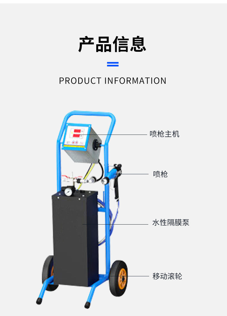 整体美观大方,结构合理,采用隔膜泵供漆系统,稳定性好,经济实惠。