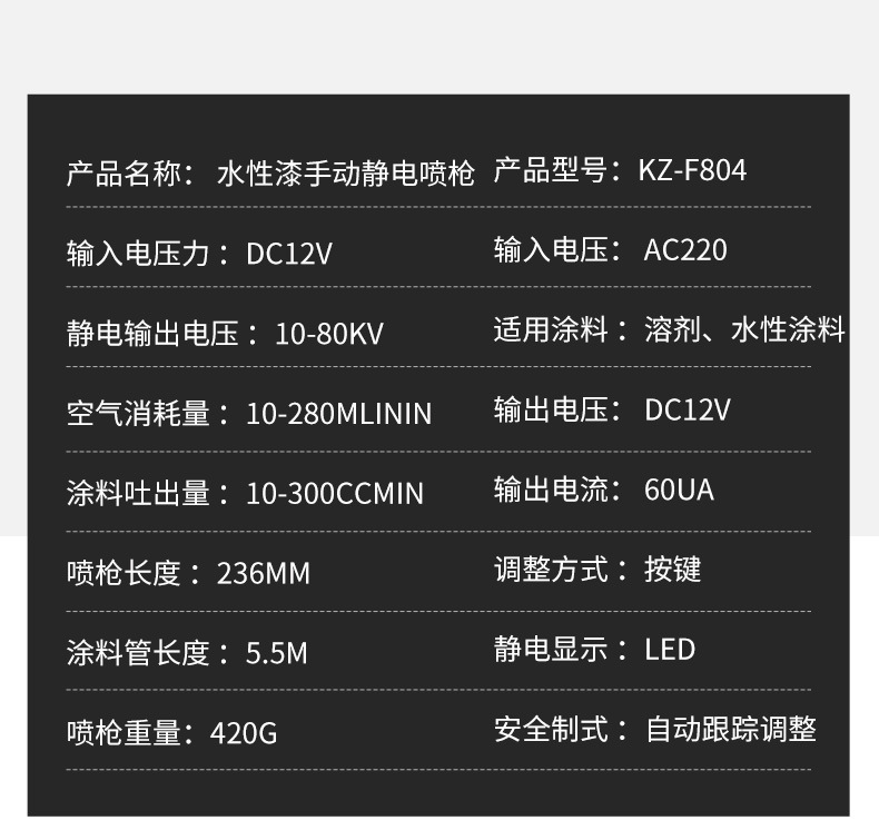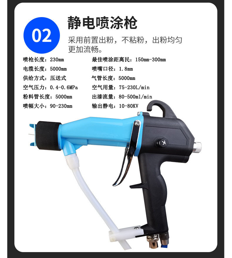 独特的内置绝缘供漆装置,无需另外的绝缘台,保证涂料的带电能力,获得更高的涂料利用率。